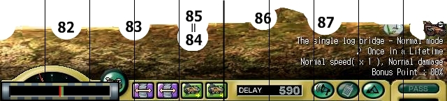 ↑これは、無風(または右1メモリ)時に高角度MAXを撃った場合の各着弾点です。